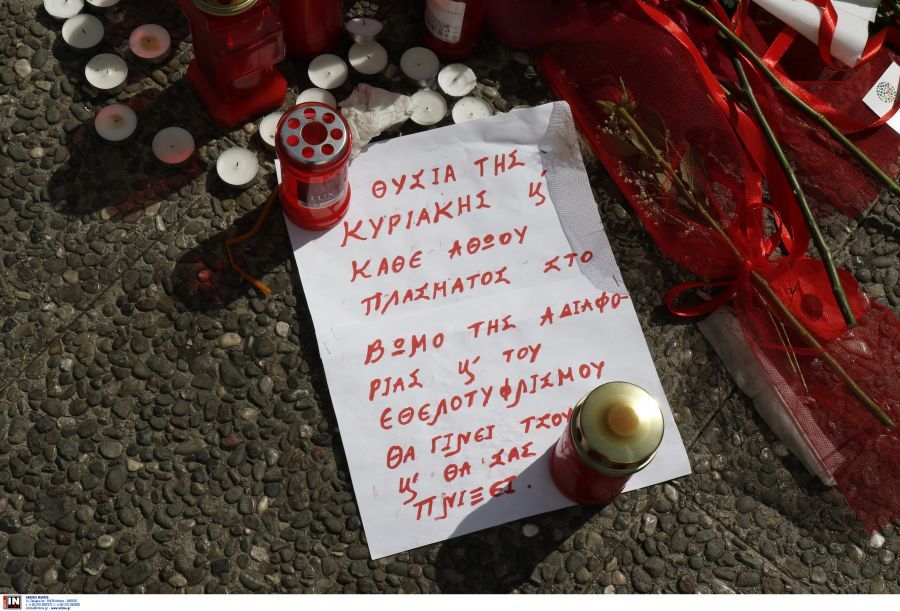 Οργή, θλίψη και συγκίνηση προκαλούν τα γράμματα που αφήνουν πολίτες, συγγενείς και φίλοι της 28χρονης Κυριακής στο σημείο της άγριας δολοφονίας της, έξω από το Αστυνομικό Τμήμα των Αγίων Αναργύρων.