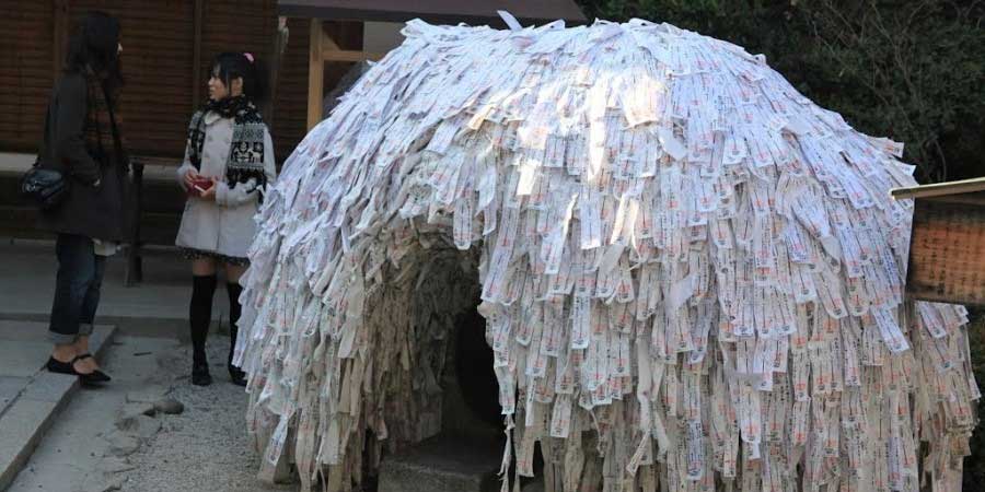 Αφότου υποβάλεις τα σέβη σου, αγόρασε ένα χαρτί katashiro για ξόρκι και γράψε την ευχή σου. Κρατώντας στο χέρι το χαρτάκι, πέσε στα τέσσερα κι αν θέλεις μια σχέση (ή να ενδυναμώσεις αυτή στην οποία είσαι) πρέπει να συρθείς από το μπροστινό άνοιγμα της οπής στην πέτρα και να βγεις απ’ το πίσω. Αν θέλεις να διαλυθεί η σχέση σου, κάνεις την ανάποδη διαδρομή. Στη διαδρομή, απαγγέλλεις την ευχή σου.