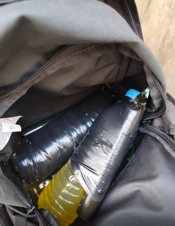 Σύμφωνα με την ανακοίνωση, στην κατοχή συλληφθέντων βρέθηκαν αεροβόλο πιστόλι, καπνογόνο, βεγγαλικά, αυτοσχέδιοι εμπρηστικοί μηχανισμοί και μπουκάλι με βενζίνη.
