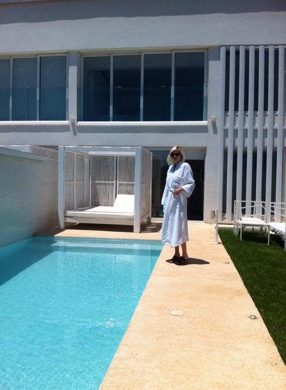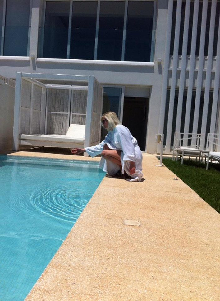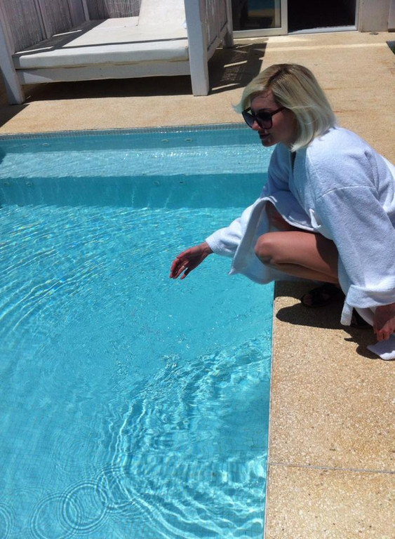 Η Τζούλια Αλεξανδράτου με το μπουρνούζι της δίπλα στην πισίνα [εικόνες]