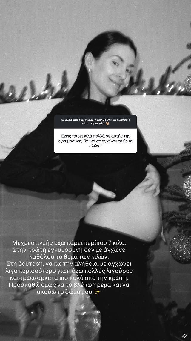 Η ίδια αποκάλυψε, μεταξύ άλλων, πως διανύει τον 5ο μήνα της εγκυμοσύνης της, ότι έχει πάρει 7 κιλά, αλλά και πως δεν επιθυμεί να μάθει το φύλο του μωρού.