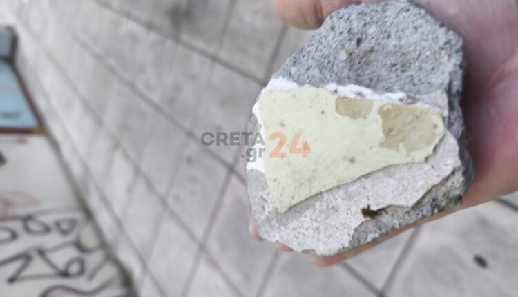 Πριν από λίγες ημέρες ένα ακόμη κομμάτι έπεσε στο πεζοδρόμιο. Μια «ανάσα» από το σημείο βρισκόταν εργαζόμενη του Εργατικού Κέντρου Ηρακλείου, ενώ δευτερόλεπτα μετά, πέρασε από εκεί μια μητέρα με τα δύο της παιδιά, σύμφωνα με την ιστοσελίδα creta24.gr.