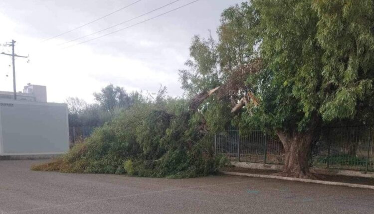 Ηράκλειο: Μεγάλο κλαδί δέντρου έπεσε στην αυλή δημοτικού στις Μοίρες