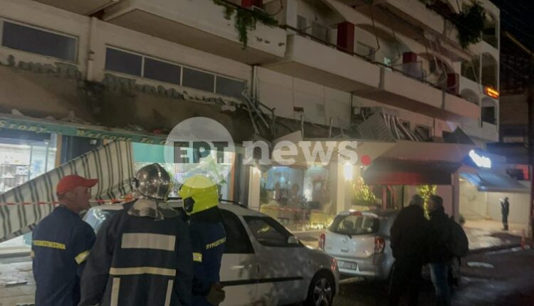 Στο σημείο παραμένουν τόσο μπάζα όσο και τμήματα της μαρκίζας που κρέμονται, τα οποία θα απομακρυνθούν ώστε να μην υπάρξει νέος κίνδυνος αποκόλλησης.