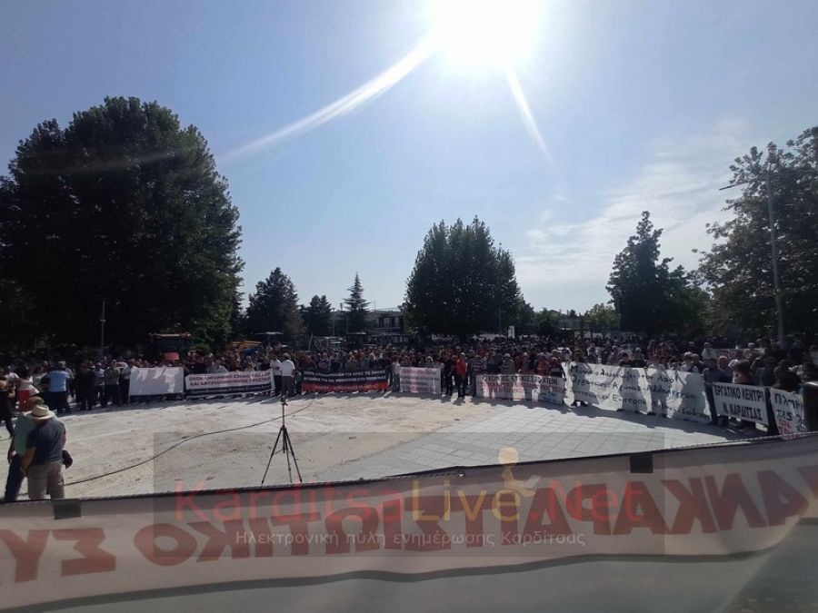 Μεγάλη ήταν η συμμετοχή στο συλλαλητήριο που έγινε στον Παλαμά, στην Καρδίτσα για τις ζημιές που έχουν αφήσει πίσω τους οι κακοκαιρίες Daniel και Elias.
