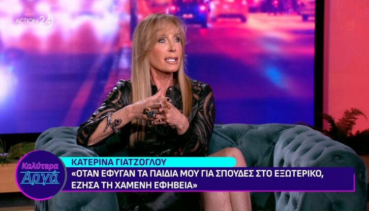 Η Κατερίνα Γιατζόγλου ήταν καλεσμένη στην εκπομπή της Αθηναΐδας Νέγκα «Καλύτερα Αργά» στο Action 24 και μίλησε ανοιχτά για την εικόνα της, τη γυμναστική, τις πλαστικές επεμβάσεις, αλλά και για τα παιδικά της χρόνια, όταν – όπως είπε – ένιωθε το «ασχημόπαπο» της οικογένειας.