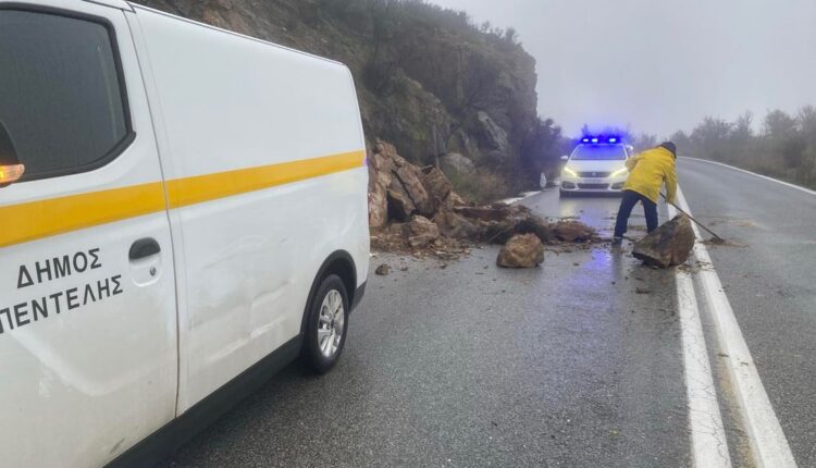 Η κυκλοφορία θα αποκατασταθεί μετά την απομάκρυνση των βράχων από βαρέως τύπου όχημα του Δήμου Πεντέλης.