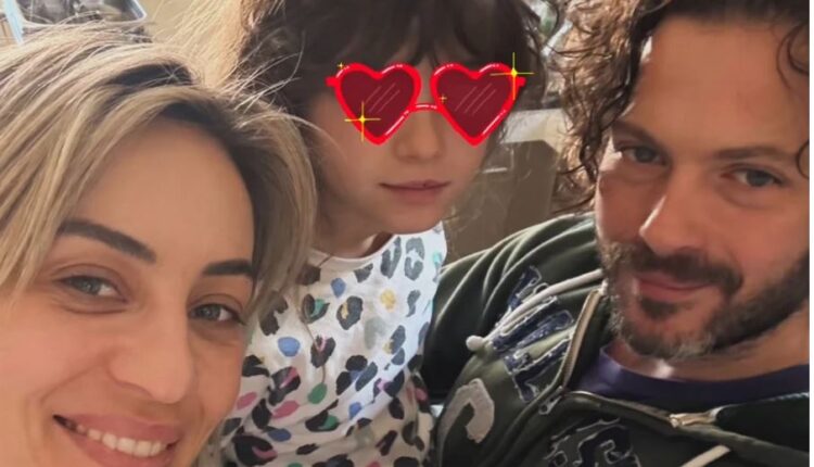 Η Ελεονώρα Μελέτη ποζάρει μαζί με τον σύζυγό της, Θοδωρή Μαροσούλη, και την κόρη τους, Αλεξάνδρα.