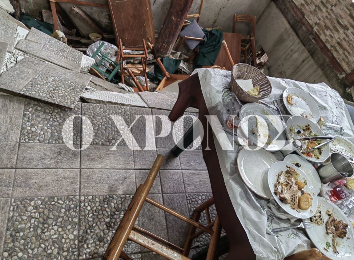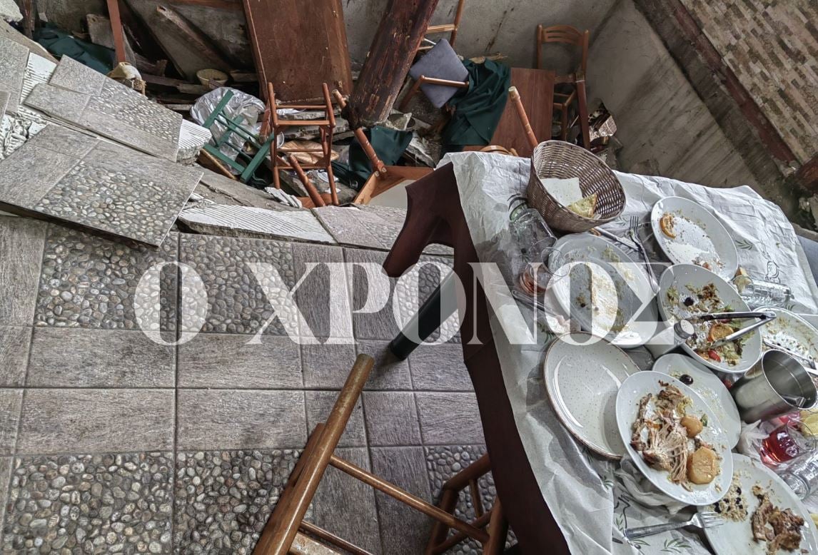 Η ταβέρνα ήταν γεμάτη από κόσμο όταν ξαφνικά ακούστηκε ένα δυνατός θόρυβος. Μέσα σε δευτερόλεπτα τέσσερα τραπέζια με πελάτες βρέθηκαν στο κενό.