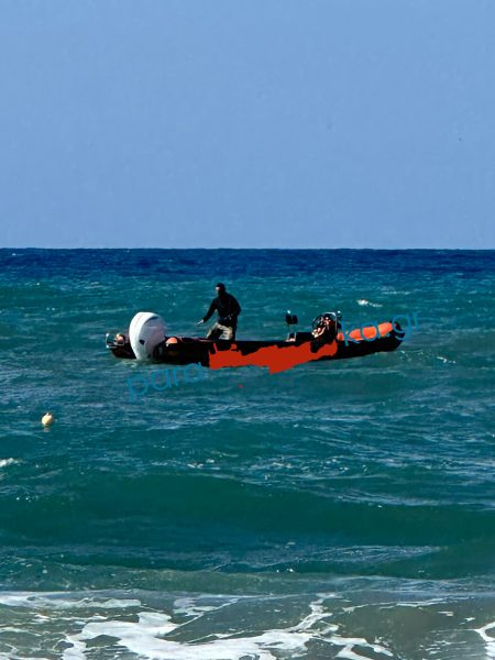 Εξαιτίας του ισχυρού κυματισμού και του αέρα είχε παρασυρθεί σε μεγάλη απόσταση από την παραλία και χρειάστηκε η συνδρομή πλωτού.