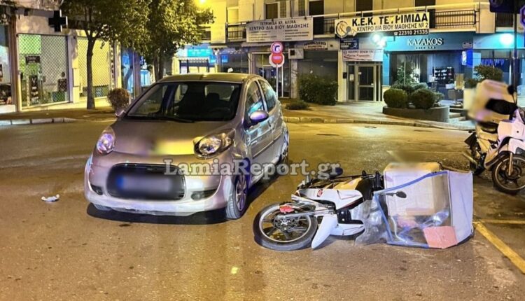 Τροχαίο ατύχημα σημειώθηκε στη Λαμία το βράδυ του Σαββάτου (16/1) στο κέντρο της πόλης όταν ΙΧ αυτοκίνητο συγκρούστηκε με μηχανή που οδηγούσε διανομέας.