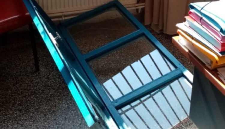 Λάρισα: Κατέρρευσε το παράθυρο σε σχολείο και έπεσε πάνω στον διευθυντή – ΦΩΤΟ