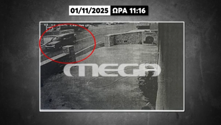 Η ώρα είναι 11:14 το πρωί του Σαββάτου (1/11), λίγο πριν από το αιματηρό επεισόδιο. Διακρίνεται το αυτοκίνητο του 39χρονου, ο οποίος μόλις έχει βγει από το σπίτι και μπαίνει στο αγροτικό, όπου, σύμφωνα με τον τηλεοπτικό σταθμό, φέρεται να είχε και οπλισμό.