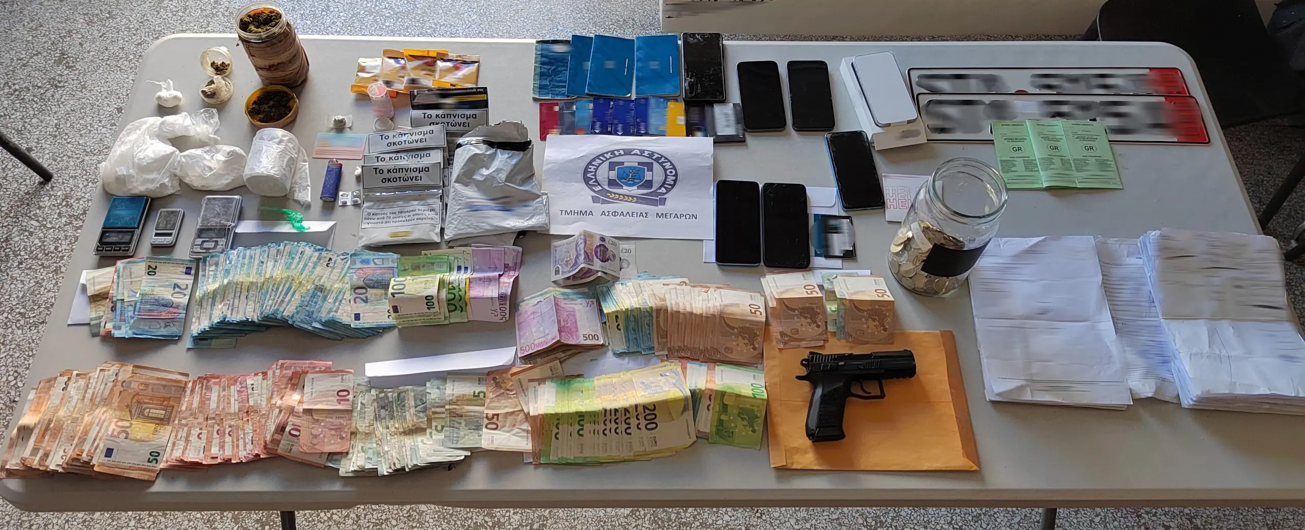 Σύμφωνα με την ΕΛ.ΑΣ.. στο πλαίσιο οργανωμένης αστυνομικής επιχείρησης που πραγματοποιήθηκε από το Τμήμα Ασφαλείας Μεγάρων της Διεύθυνσης Ασφαλείας Αττικής με τη συνδρομή αστυνομικών της Υποδιεύθυνσης Ασφαλείας Δυτικής Αττικής, της Ο.Π.Κ.Ε. και αστυνομικών σκύλων, πρωινές ώρες της Τρίτης (13/02) στα Μέγαρα Αττικής, συνελήφθησαν 5 μέλη της οργάνωσης, ηλικίας 30, 35, 44 και 52 ετών και σε βάρος τους σχηματίστηκε δικογραφία –κατά περίπτωση- για διακίνηση ναρκωτικών ουσιών και νομιμοποίηση εσόδων από εγκληματικές δραστηριότητες και παράβαση της νομοθεσίας περί όπλων.