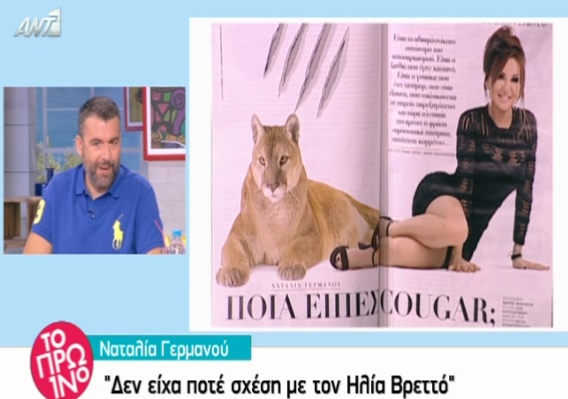 Η Ναταλία Γερμανού, στην τελευταία της συνέντευξη αρνήθηκε κάθετα τις φήμες περί σχέσης με τον Ηλία Βρεττό και το γεγονός αυτό δεν ήταν δυνατό να μη σχολιαστεί στο Πρω1νό.