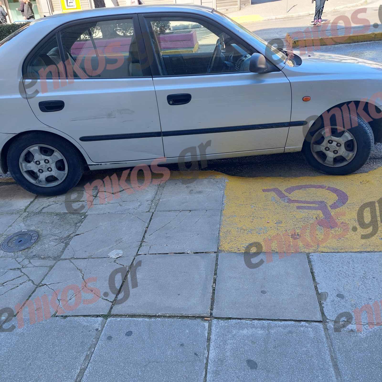 Μάλιστα, όχι μόνο πάρκαρε μπροστά από την ράμπα αναπήρων, αλλά το μισό όχημα βρίσκεται επάνω στο πεζοδρόμιο και το υπόλοιπο στον δρόμο.