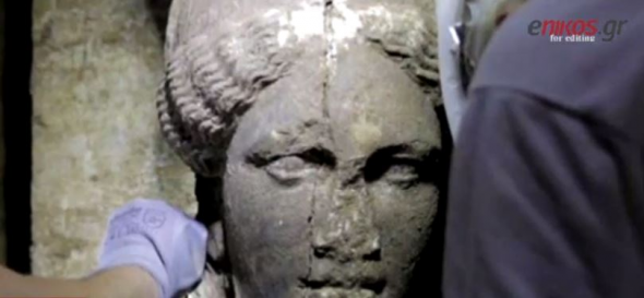 Τρία κομμάτια μαρμάρινου επιστύλιου που φέρουν ίχνη μπλε και κόκκινου χρώματος είναι τα νέα ευρήματα στο ταφικό μνημείο στην Αμφίπολη  και μεταφέρθηκαν κάτω από αυστηρά αστυνομικά μέτρα στο αρχαιολογικό Μουσείο της Αμφίπολης.