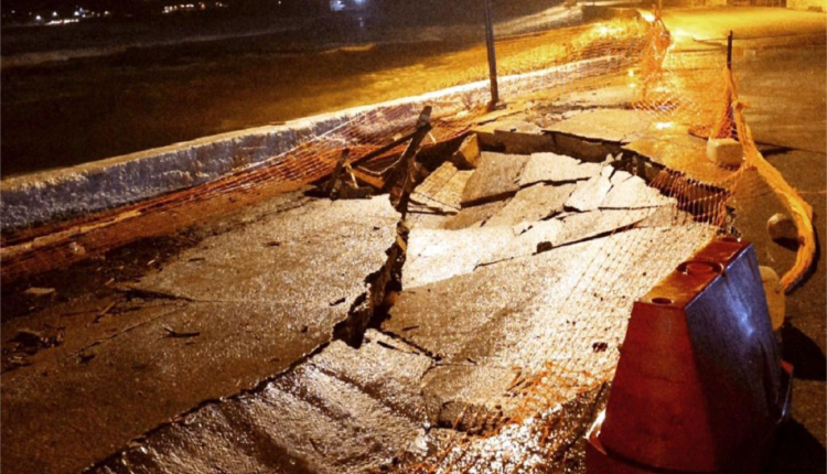 Νέο Οίτυλο: Καθίζηση στο οδόστρωμα του παραλιακού δρόμου, λόγω της κακοκαιρίας