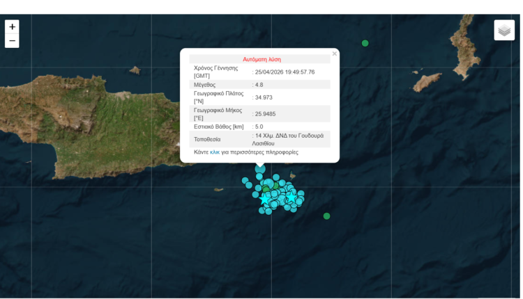 Νέος σεισμός 4,8 Ρίχτερ στην Κρήτη