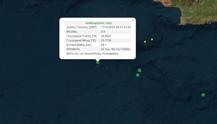 Σύμφωνα με το Γεωδυναμικό Ινστιτούτο ο σεισμός στην Γαύδο σημειώθηκε στις 3:30 και είχε μέγεθος 3,6 Ρίχτερ.