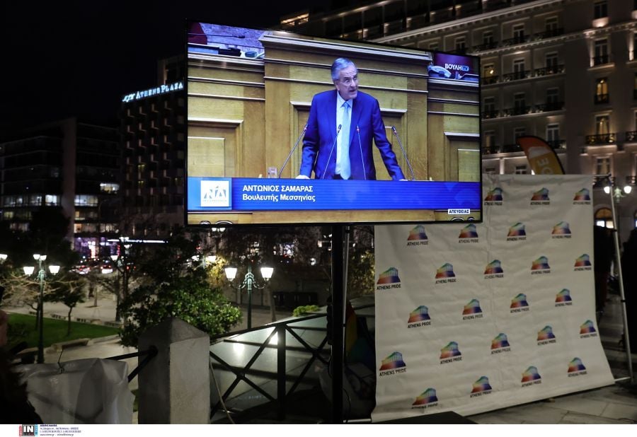 Συγκεκριμένα, αυτή την ώρα συγκεντρώθηκαν μέλη της ΛΟΑΤΚΙ+ κοινότητας που παρακολουθούν από γιγαντοοθόνες τις ομιλίες που γίνονται μέσα στη Βουλή και αφορούν τη ψήφιση του νομοσχέδιου για τον γάμο και την τεκνοθεσία στα ομόφυλα ζευγάρια.