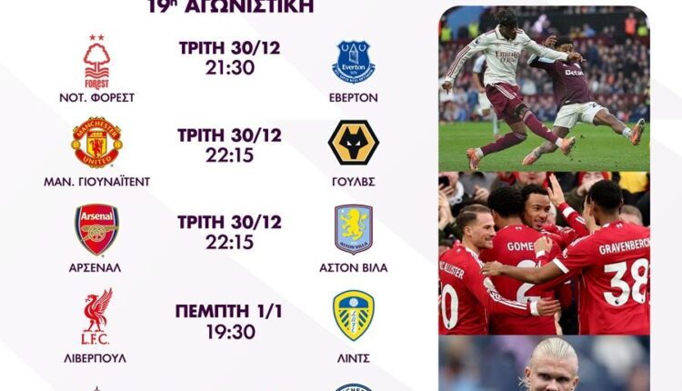 Η συνέχεια είναι καταιγιστική με την 19η αγωνιστική και τα παιχνίδια Τσέλσι – Μπόρνμουθ: Τρίτη 30 Δεκεμβρίου, 21:30, Νότιγχαμ Φόρεστ – Έβερτον: Τρίτη 30 Δεκεμβρίου, 21:30, Μάντσεστερ Γιουνάιτεντ – Γουλβς: Τρίτη 30 Δεκεμβρίου, 22:15, Άρσεναλ – Άστον Βίλα: Τρίτη 30 Δεκεμβρίου, 22:15), Λίβερπουλ – Λιντς : Πέμπτη 1 Ιανουαρίου, και Σάντερλαντ – Μάντσεστερ Σίτι: Πέμπτη 1 Ιανουαρίου, 22:00), ενώ για την 20η αγωνιστική δεσπόζουν οι αναμετρήσεις Άστον Βίλα – Νότγχαμ Φόρεστ: Σάββατο 3 Ιανουαρίου, 14:30, Μπόρνμουθ – Άρσεναλ: Σάββατο 3 Ιανουαρίου, 14:30, Λιντς – Μάντσεστερ Γιουνάιτεντ: Σάββατο 3 Ιανουαρίου, 14:30, Φούλαμ – Λίβερπουλ Σάββατο 3 Ιανουαρίου, 17:00 και φυσικά το ντέρμπι της αγωνιστικής Μάντσεστερ Σίτι – Τσέλσι Κυριακή 4 Ιανουαρίου, 19:30.
