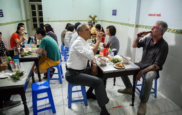 Σε ταβέρνα στα σοκάκια του Ανόι (πρωτεύουσα του Βιετνάμ) βρέθηκαν ο πρόεδρος των ΗΠΑ Μπάρακ Ομπάμα και ο γνωστός τηλεοπτικός σεφ/ ταξιδευτής Άντονι Μπουρντέ.