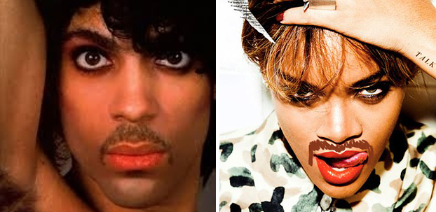 Ο Prince, η Rihanna και το μουστάκι 28/02/2014 Share Το μουστάκι ένωσε τους 2 σταρ! Τι σχέση μπορεί να έχει η Rihanna με τον Prince πέρα από το ότι και οι δύο βγάζουν το παντεσπάνι τους μέσα από τη μουσική; Σύμφωνα με τους παρατηρητικούς χρήστες του διαδικτύου απέχουν εμφανισιακά μόλις ένα… μουστάκι!