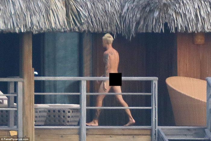 Ο Μπίμπερ, με το πλατινέ του μαλλί να γίνεται πιο φωτεινό από τον ήλιο, βγήκε στο μπαλκόνι του ολόγυμνος και έδειξε σε όλο τον κόσμο ποιο είναι το πραγματικό του μέγεθος. Ο παπαράτσι τον απαθανάτισε μπρος και πίσω και όλο το Twitter μιλάει για αυτόν. Στο δωμάτιο μαζί του ήταν ένα μοντέλο και fashion blogger εκ Βρετανίας, η Τζέιντ Πιρς, με την οποία εμφανίστηκαν αργότερα φορώντας τα μπουρνούζια τους.