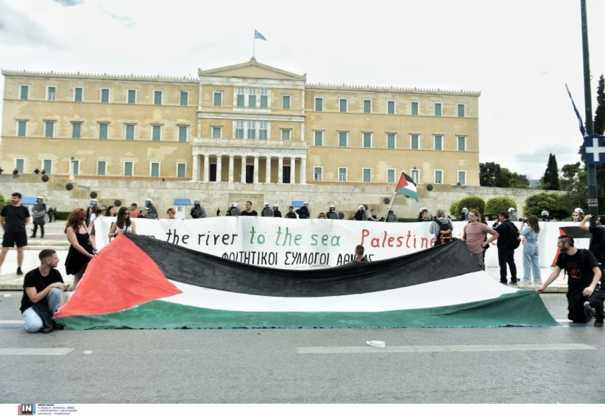 Η τροχαία είχε προχωρήσει σε σταδιακό κλείσιμο των δρόμων στο κέντρο της Αθήνας. Οι συγκεντρωμένοι στο Σύνταγμα απελευθέρωσαν μπαλόνια στον αέρα, τα οποία ήταν στα χρώματα της σημαίας της Παλαιστίνης για να δείξουν την αλληλεγγύη τους στον παλαιστινιακό λαό.