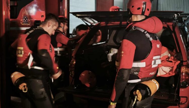 Οι δύο κτηνοτρόφοι αποκλείστηκαν όταν χείμαρρος φούσκωσε και τα ορμητικά νερά δεν τους επέτρεπαν να περάσουν με το αυτοκίνητό τους.