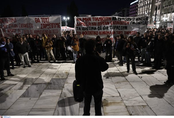 Από νωρίς το πρωί σήμερα φοιτητές και φοιτήτριες φοιτητικών συλλόγων απ’ όλη την Ελλάδα συγκεντρώθηκαν στα Προπύλαια και κατευθύνθηκαν με πορεία μέχρι τη Βουλή όπου παρέμειναν περίπου μέχρι τις 20.30 το βράδυ με βασικά τους αιτήματα την απόσυρση του νομοσχεδίου για την ίδρυση ιδιωτικών πανεπιστημίων, αποκλειστικά δημόσιες και πραγματικά δωρεάν σπουδές, αύξηση της κρατικής χρηματοδότησης για τα πανεπιστήμια για καθηγητές, προσωπικό, υποδομές, πτυχία με αξία και δωρεάν φοιτητική μέριμνα για όλους και όλες (φοιτητικές εστίες, σίτιση, μεταφορά).