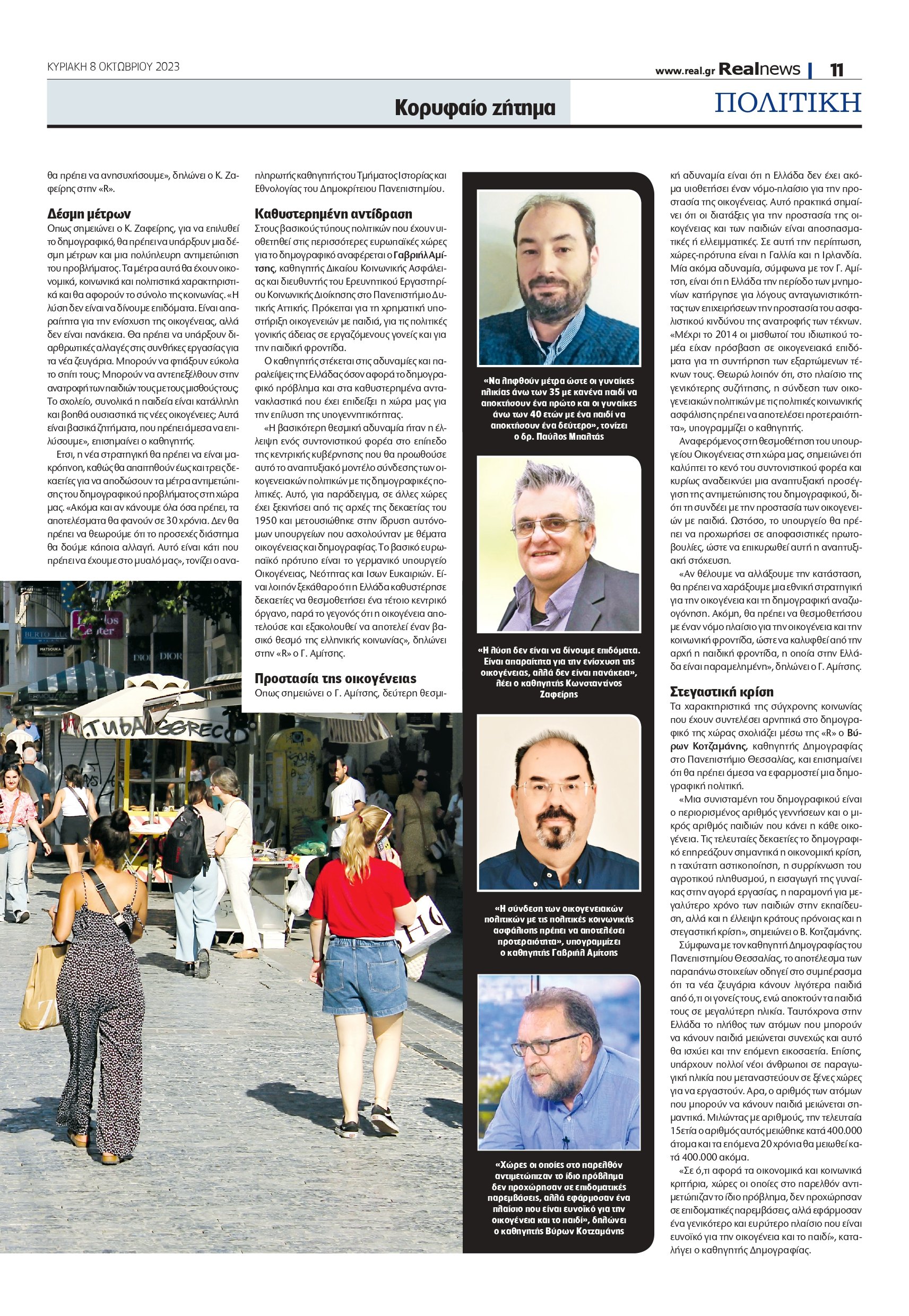 «Σε ό,τι αφορά τα οικονομικά και κοινωνικά κριτήρια, χώρες οι οποίες στο παρελθόν αντιμετώπιζαν το ίδιο πρόβλημα, δεν προχώρησαν σε επιδοματικές παρεμβάσεις, αλλά εφάρμοσαν ένα γενικότερο και ευρύτερο πλαίσιο που είναι ευνοϊκό για την οικογένεια και το παιδί», καταλήγει ο καθηγητής Δημογραφίας.