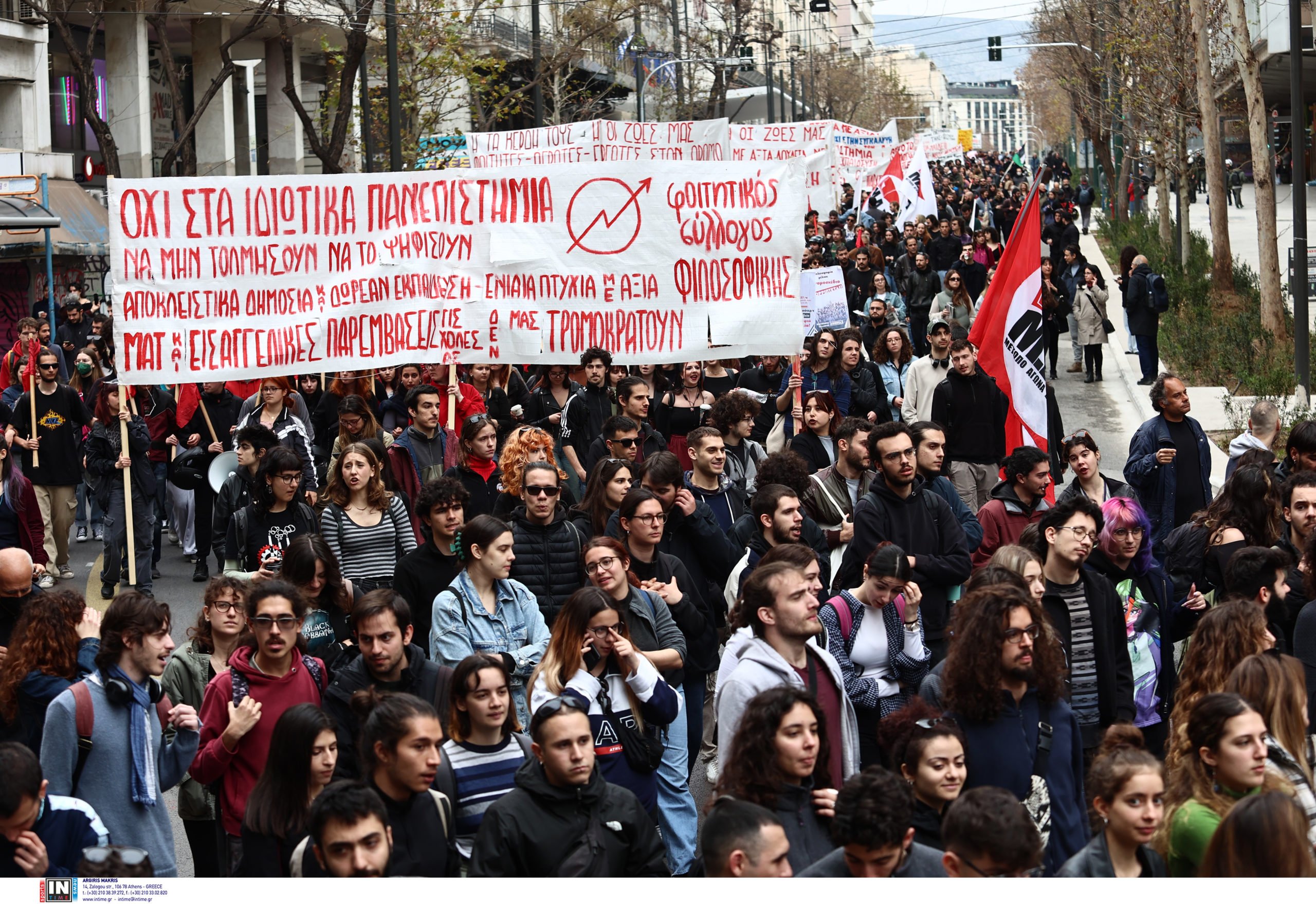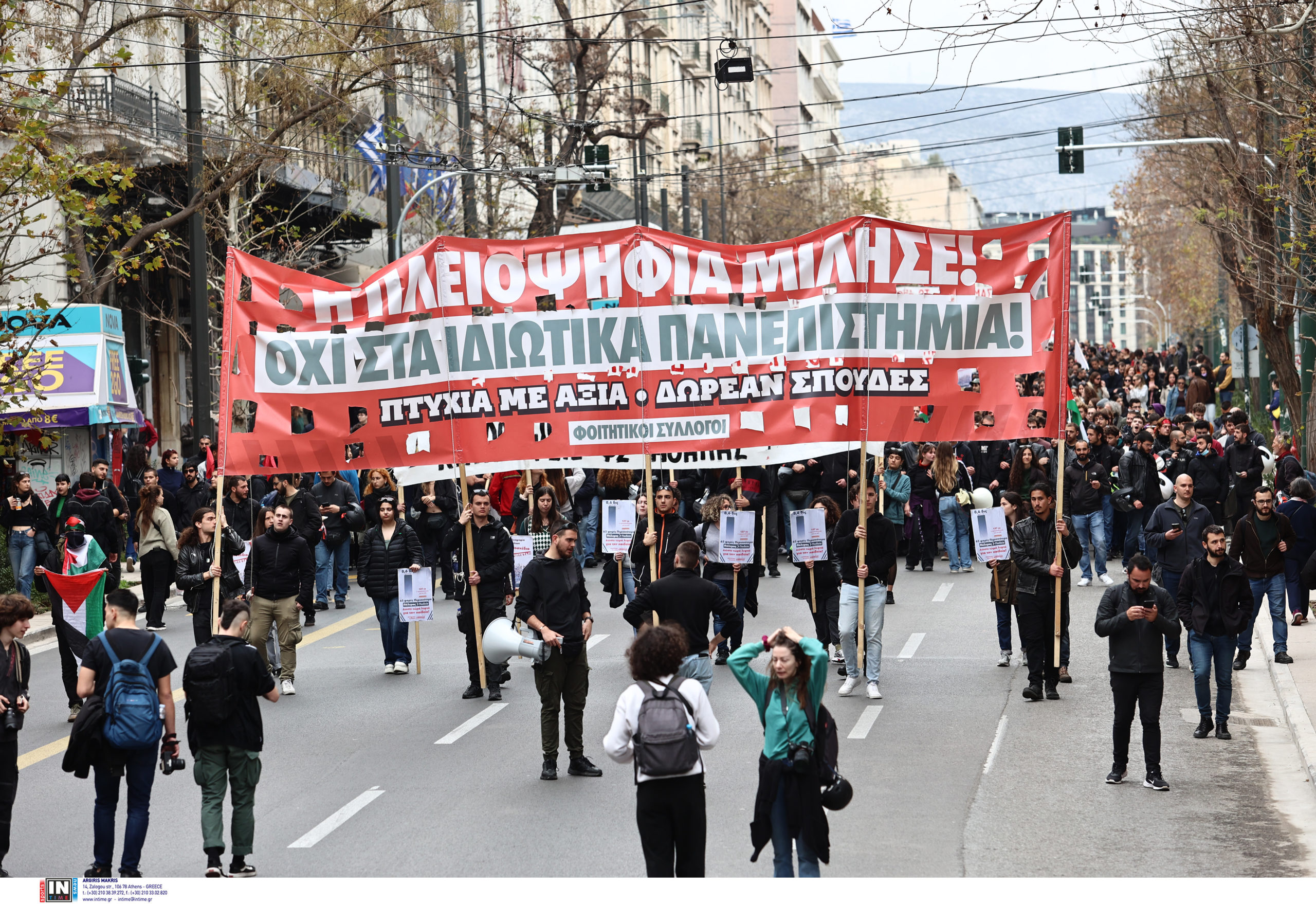 Πανεκπαιδευτικό συλλαλητήριο: Σε εξέλιξη η πορεία στην Αθήνα για τα μη κρατικά πανεπιστήμια – ΦΩΤΟ