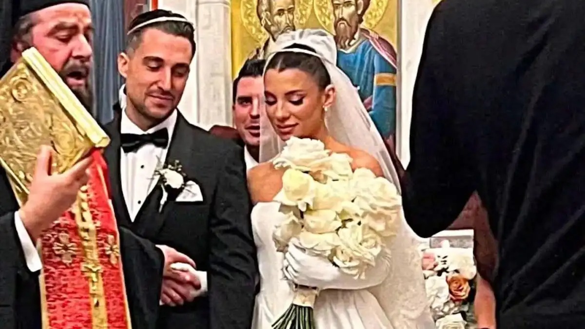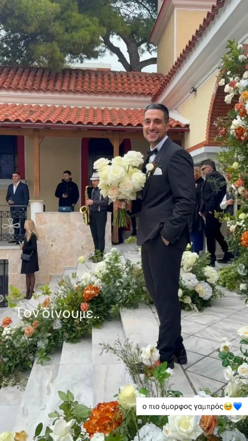 Η Μαριαλένα Ρουμελιώτη εμφανίστηκε με νυφικό ρομαντικού ύφους και πέπλο, ενώ είχε τα μαλλιά της χτενισμένα ψηλά, ολοκληρώνοντας μια κομψή και λιτή εμφάνιση. Δίπλα της, ο Σάκης Κατσούλης στάθηκε με εμφανή συγκίνηση, φορώντας ένα κλασικό μαύρο κοστούμι, όπως αρμόζει στη σημασία της ημέρας.