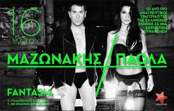 Μία αφίσα που θα συζητηθεί! Η Πάολα με ζαρτιέρες και ο Γιώργος Μαζωνάκης με εσώρουχο φωτογραφήθηκαν για την αφίσα του μαγαζιού «Φαντασία» οπου ξεκινούν σε λίγες μέρες εμφανίσεις!