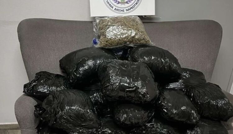 Υπενθυμίζεται ότι οι αστυνομικοί της Δίωξης Ναρκωτικών βρήκαν και κατέσχεσαν 12 κιλά και 846 γραμμάρια κάνναβης, διαμοιρασμένα σε 20 αυτοσχέδιες ανισοβαρείς συσκευασίες.