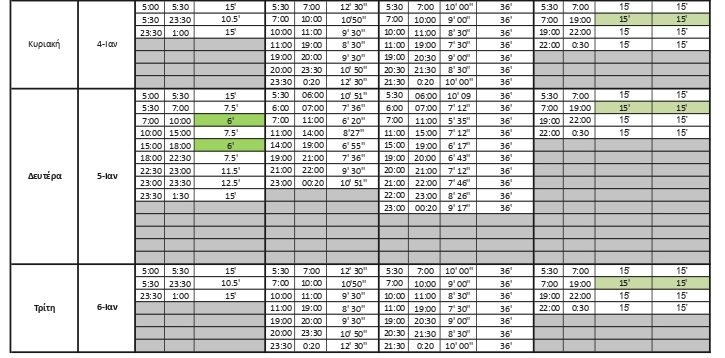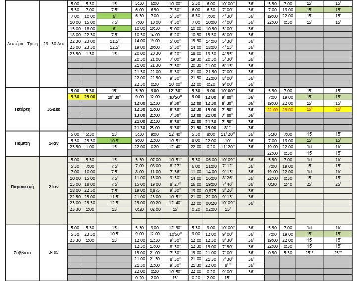 Για τις συχνότητες δρομολογίων των μέσων σταθερής τροχιάς (Γραμμές Μετρό 1, 2, 3 και Τραμ) κατά τις ημέρες των εορτών μπορείτε να ενημερωθείτε αναλυτικά ΕΔΩ