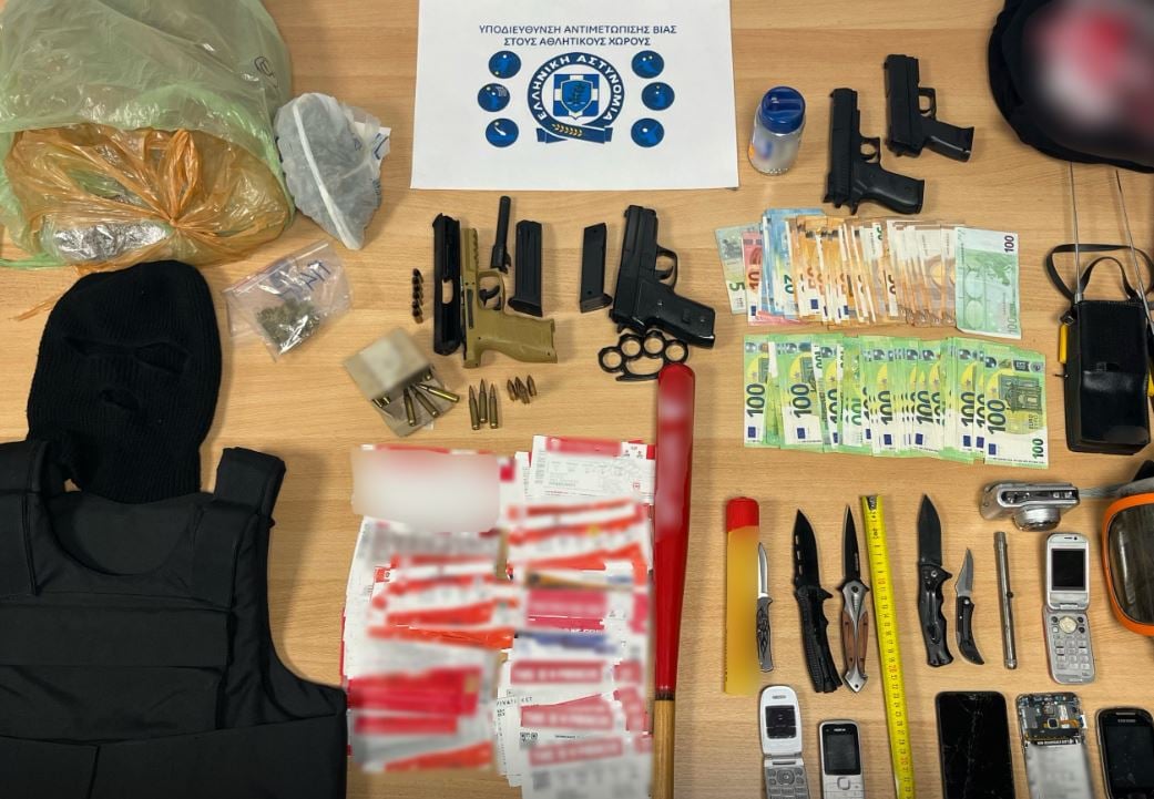Για τον τερματισμό της δράσης τους οργανώθηκε και υλοποιήθηκε, τη Δευτέρα 22 Απριλίου 2024, αστυνομική επιχείρηση με την κωδική ονομασία «ΔΑΜΟΚΛΕΙΟΣ ΣΠΑΘΗ», στο πλαίσιο της οποίας συνελήφθησαν-63- μέλη της οργάνωσης, που συνολικά απαρτίζεται από -160- άτομα, τα οποία κατηγορούνται για –κατά περίπτωση- εγκληματική οργάνωση, ανθρωποκτονία από πρόθεση, επικίνδυνες σωματικές βλάβες, διατάραξη κοινής ειρήνης, έκρηξη, ληστεία, εκβίαση, εμπρησμό, κλοπή, φθορά ξένης ιδιοκτησίας και για παραβάσεις σχετικές με τις εκρηκτικές ύλες, τις φωτοβολίδες, τα βεγγαλικά, τα όπλα σε συνδυασμό με τη νομοθεσία περί αθλητισμού.