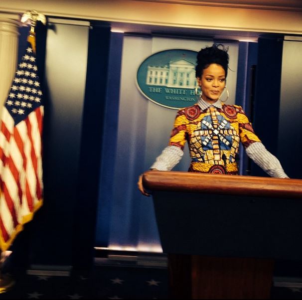 Η Ριάνα στο Λευκό Οίκο 13/11/2014 Share Δεν έχει μείνει και κάτι άλλο να κάνει! Η Ριάνα ξεναγήθηκε στον Λευκό Οίκο και φυσικά δεν έχασε την ευκαιρία να φωτογραφηθεί. Συγκεκριμένα, ανέβασε φωτογραφίες της στο Instagram όπου εμφανίζεται να κάνει… μπρίφινγκ στην αίθουσα Τύπου του Λευκού Οίκου.