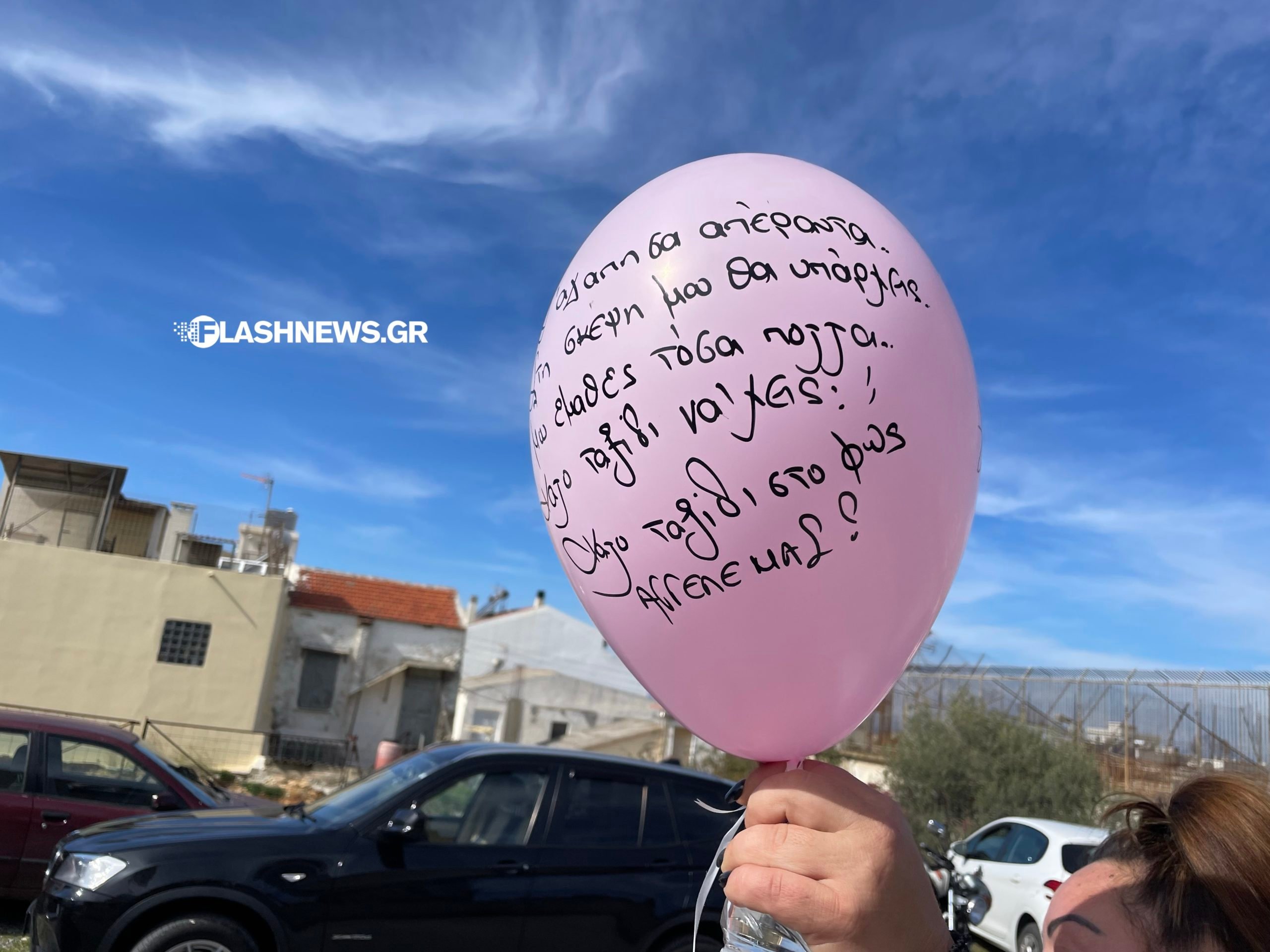 Στο τέλος της τελετής δεκάδες μπαλόνια αφέθηκαν στον Χανιώτικο ουρανό με μηνύματα που συνόδευσαν την Ραφαέλα στο τελευταίο της ταξίδι με τον κόσμο να φωνάζει «άγγελος».