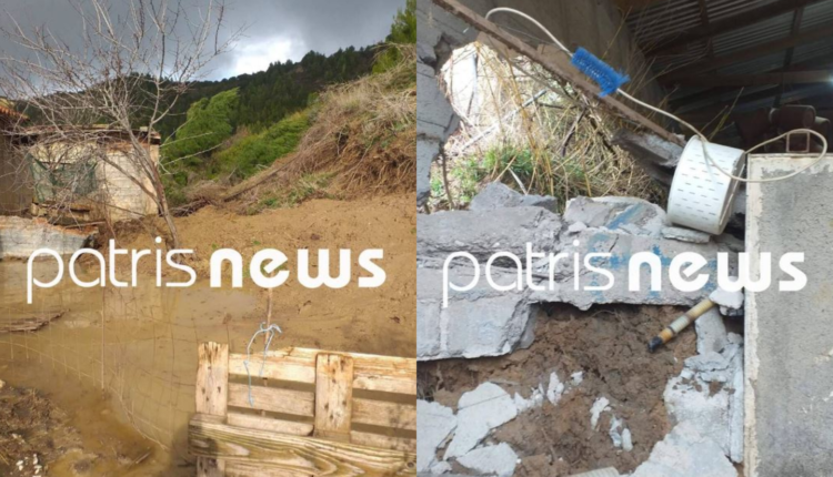 Ο μεγάλος όγκος νερού που έπεσε στην περιοχή, έφερε την κατολίσθηση, με τις εγκαταστάσεις που διαθέτει ο κτηνοτρόφος να παρασύρονται και να καταπλακώνονται από χώματα και νερό.