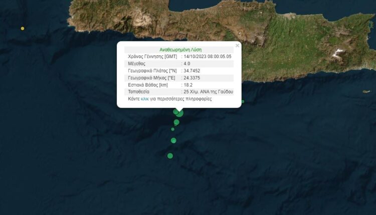 Σεισμός 4 Ρίχτερ ανοιχτά της Γαύδου