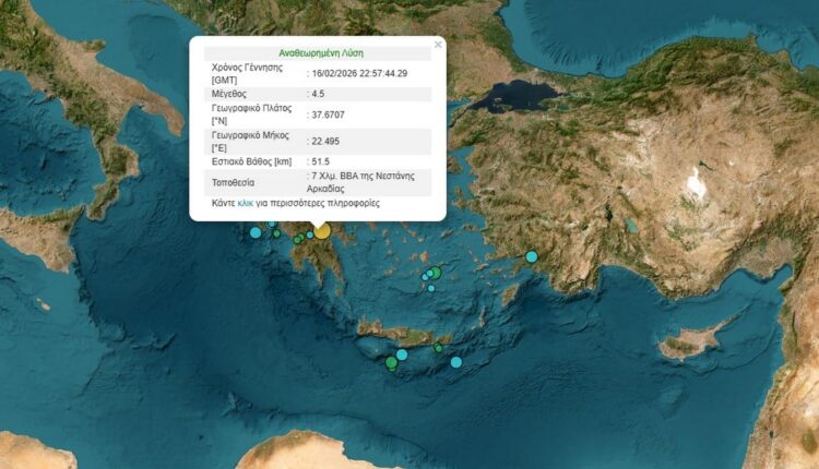 Σεισμός 4,5 ρίχτερ στην Αρκαδία – Αισθητός μέχρι και την Αττική