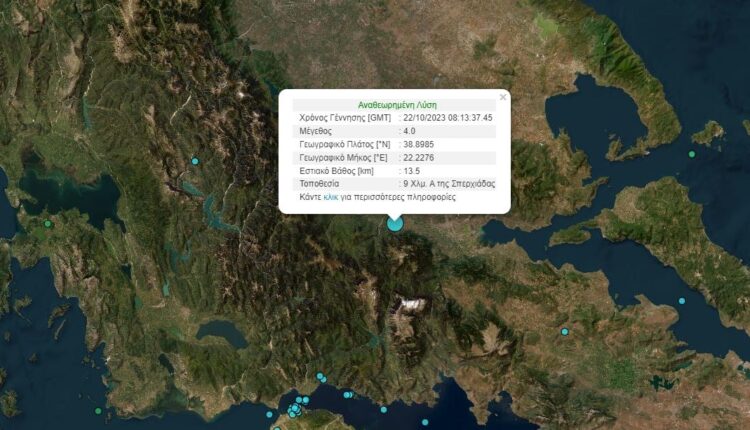 Σεισμός μεγέθους 4 βαθμών της κλίμακας Ρίχτερ, σημειώθηκε το πρωί της Κυριακής 22/10 κοντά στη Λαμία. Σύμφωνα με το Γεωδυναμικό Ινστιτούτο, ο σεισμός είχε επίκεντρο 9 χιλιόμετρα ανατολικά της Σπερχειάδας. Το εστιακό βάθος του σεισμού υπολογίζεται σε 13,5 χιλιόμετρα.