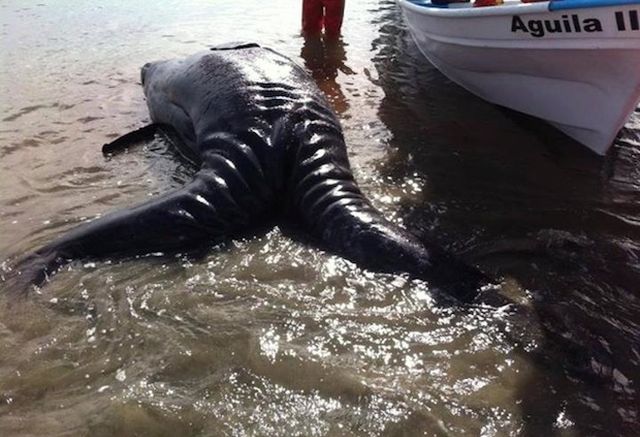 Οι εικόνες που καταγράφηκαν στη Laguna Ojo του Μεξικού δείχνουν τα σιαμαία φαλαινάκια που βρέθηκαν από ψαράδες της περιοχής.