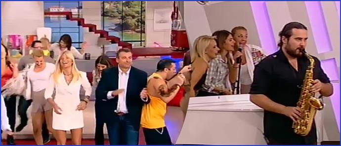 Στις 10 ακριβώς η τηλεοπτική παρέα του ΑΝΤ1, με όλους τους συνεργάτες στημένους και έτοιμους να μας χαρίσουν τον πιο ωραίο τους χορό, χάλι γκάλι με διαμορφωμένους στίχους επάνω στη σκαλέτα της εκπομπής και η αρχή έγινε.