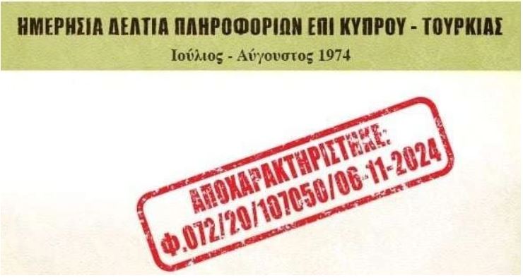 Σε μια προσπάθεια να συμβάλει στην καλύτερη κατανόηση όσων συνέβησαν τότε, η Εθνική Υπηρεσία Πληροφοριών δίνει σήμερα στη δημοσιότητα το σύνολο των δελτίων πληροφοριών της περιόδου Ιουλίου Αυγούστου 1974, που το αρμόδιο τότε τμήμα της, συνέτασσε καθημερινά, αποτυπώνοντας τις εξελίξεις, όπως καταγράφονταν στη βάση των πληροφοριών που περιέρχονταν σε γνώση του. Πρόκειται δηλαδή για ένα ημερολόγιο εξελίξεων, που περιγράφει δράσεις, όχι της Υπηρεσίας, αλλά τρίτων, το οποίο, αποτελώντας ένα χαρακτηριστικό, ενιαίου ύφους και συγκεκριμένου σκοπού, συνολικό κείμενο, μπορεί να χρησιμεύσει, όχι μόνο σε ιστορικούς, αλλά και σε κάθε ενδιαφερόμενο, για την άντληση πληροφοριών και συμπερασμάτων, σε σχέση με