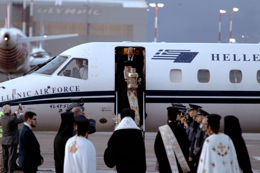 Το αεροσκάφος που μετέφερε το Άγιο Φως από τον ναό της Αναστάσεως στα Ιεροσόλυμα έφτασε σε κλίμα κατάνυξης στην Ελλάδα και συγκεκριμένα στο αεροδρόμιο «Ελευθέριος Βενιζέλος», λίγα λεπτά μετά τις 20:00. Ακολούθησε μία σύντομη τελετή στο αεροδρόμιο και στη συνέχεια ξεκίνησε η διανομή του.