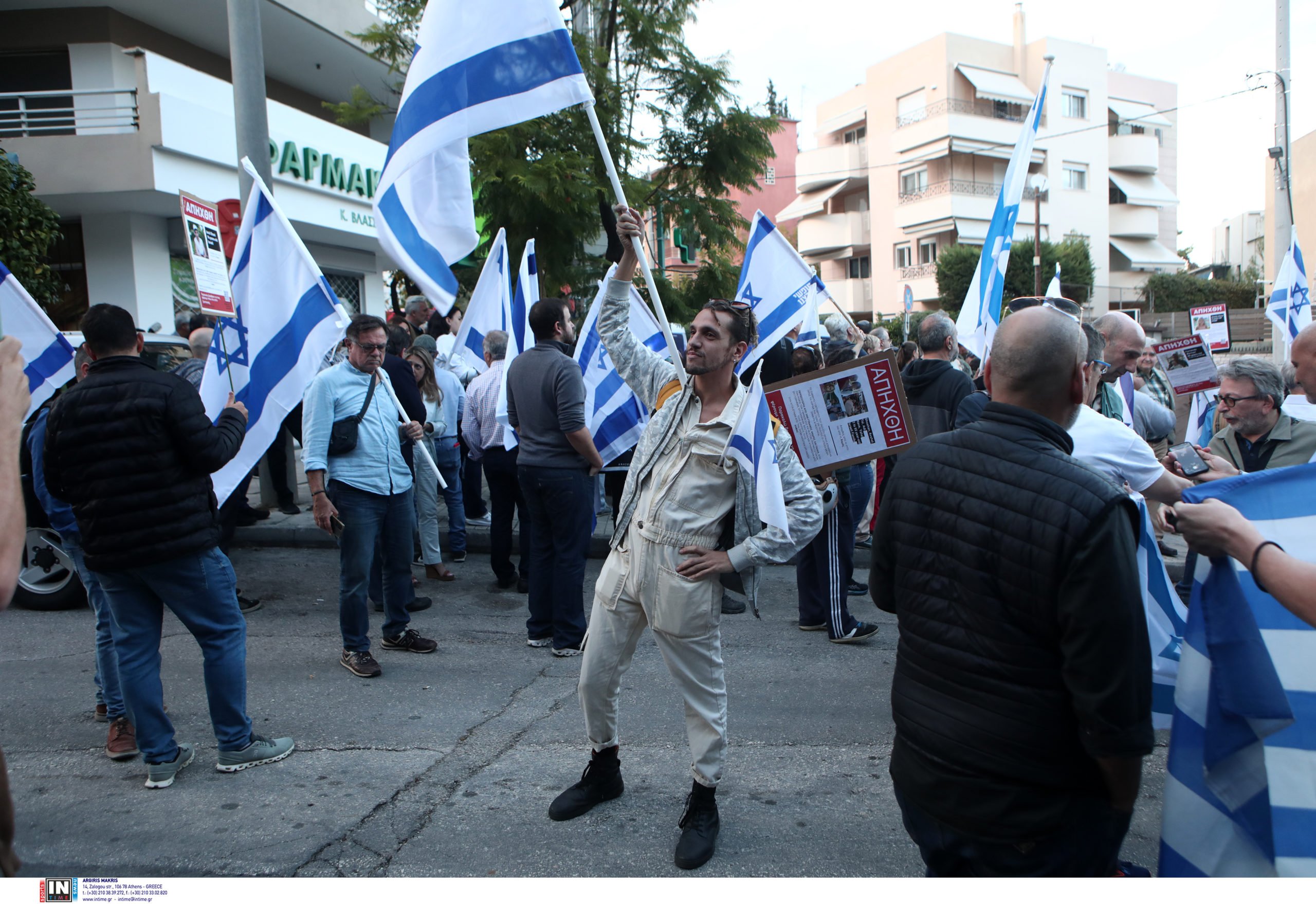 Συγκέντρωση υπέρ του Ισραήλ πραγματοποιείται αυτή την ώρα έξω από την πρεσβεία της χώρας για τις πρόσφατες εξελίξεις στον πόλεμο με την Χαμάς.